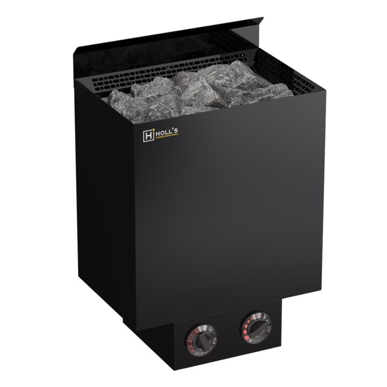 Estufa HOLL’S VULKANO Negra 9 kW. De alta gama. Control integrado (temporizador y termostato). Monofásica o trifásica