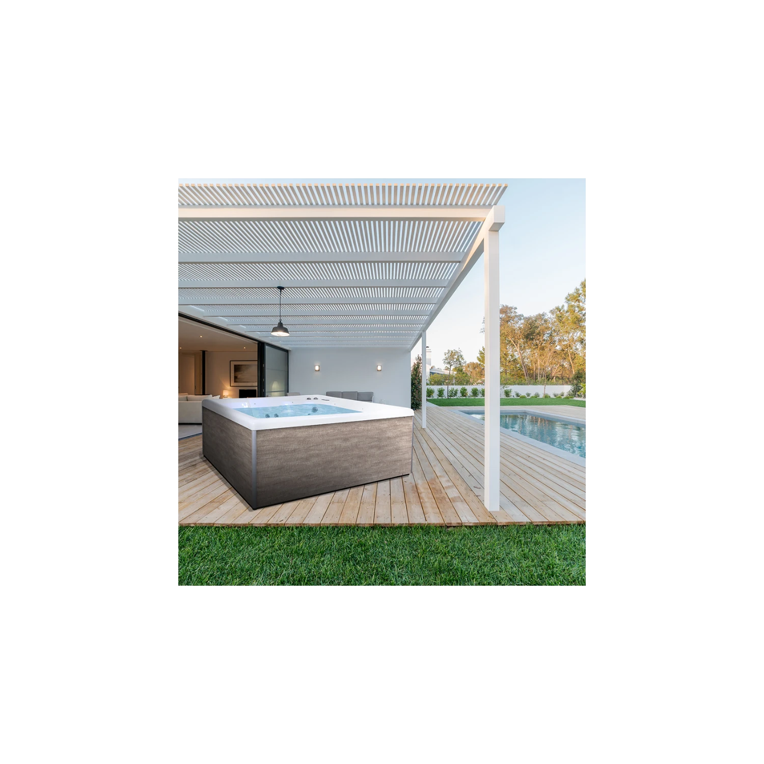 Cubeta de color blanco perla | Reborde de color gris afro | Cap. 5 personas. Sumérgete en el confort del spa cuadrado NetSpa Square Wave 2, diseñado con tecnología rígida de segunda generación. Su innovador diseño cuadrado en acrílico ABS Lucite optimiza el espacio mientras ofrece una experiencia de hidromasaje profesional con 28 jets potentes, panel de control Balboa y calentamiento rápido hasta 40°C.